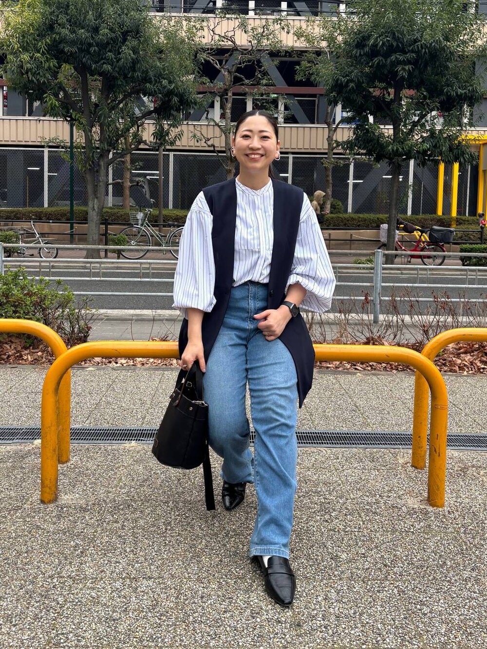《158cm/サイズ&着用感》 着用は全てレギュラーサイズを着用しています。 ▶︎はつなボディサイズ 身長158cm 体重62kg〜64kg 胸囲95cm ウエスト78cm ヒップ98cm 二の腕30cm 足24.5cm (24cmよりの中途半端サイズ) ▶︎ジレFREEサイズ ハリ感のある素材が綺麗見えするジレ。 襟元がシンプルなので、顔まわりすっきりした印象で着ていただけます。 適度な厚みが高級感もあり1枚できちんと感を演出してくれます。 お尻がしっかり隠れる丈感なので、パンツスタイルでも安心で、素材的にもシーズンレスで普段使いしやすいジレです。 ▶︎シャツFREEサイズ エルーラ1番人気シャツシリーズのアイロンイラズシャツ! 流行り廃りのないシンプルなデザインに、シャツを着た後の面倒なアイロン作業いりません! 少しシワがいっても、脱水時間を短縮して干せば復活! 気兼ねなくシャツのスタイリングを楽しんでいただける1枚です。 158cmでおしりがすっぽり隠れる丈感ですが、前は少し短めなので前だけインスタイルも楽しんでいただける着回しのきく人気アイテムです。 ▶︎パンツLサイズ 柔らかい履き心地が癖になるデニムパンツ。 ストレートと聞くと私は窮屈なイメージだったのですが、絶妙に身体のラインを拾わないゆとりのあるサイズ感が気になるお腹、お尻、太ももを綺麗にカバーしてくれる1本です。 特にウエストが心配だったのですが、2.3回履くとかなり柔らかくなり始めは食後苦しかったのですが今はいい感じになじみ大丈夫になりました! ▼▽▼▽▼▽▼▽▼▽▼▽ 見て頂き、ありがとうございます! 使用アイテムは下記に記載がございます。 ⚪︎いいね ⚪︎フォロー 嬉しいです、ありがとうございます。 ▲△▲△▲△▲△▲△▲△
