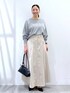《158cm/サイズ&着用感》 着用は全てレギュラーサイズを着用しています。 ▶︎はつなボディサイズ 身長158cm 体重62kg〜64kg 胸囲95cm ウエスト78cm ヒップ98cm 二の腕30cm 足24.5cm (24cmよりの中途半端サイズ) ▶︎ニットFREEサイズ 一見、シンプルなロゴニットですが、1枚でサラッと着やすい柔らかく軽い生地と、身体のラインを拾わず華奢見えさせてくれるドルマンデザインが着るだけでシルエットを綺麗に見せてくれます。 これからの季節にぴったりなシアー素材が、インナーでコーディネートのアレンジをしたりと着回し幅も広げてくれる1枚です。 ▶︎スカートFREEサイズ リネンが3%混なので、従来に比べお手入れが簡単なリネンコンシリーズのスカート。 軽い履き心地と、ウエストのゴムに、身体のラインを拾わない綺麗なフレアデザイン! ウエストはジャストサイズでご飯食べたらちょっとくるしいかもしれない?って感じのサイズ感です。 ▼▽▼▽▼▽▼▽▼▽▼▽ 見て頂き、ありがとうございます! 使用アイテムは下記に記載がございます。 ⚪︎いいね ⚪︎フォロー 嬉しいです、ありがとうございます。 ▲△▲△▲△▲△▲△▲△