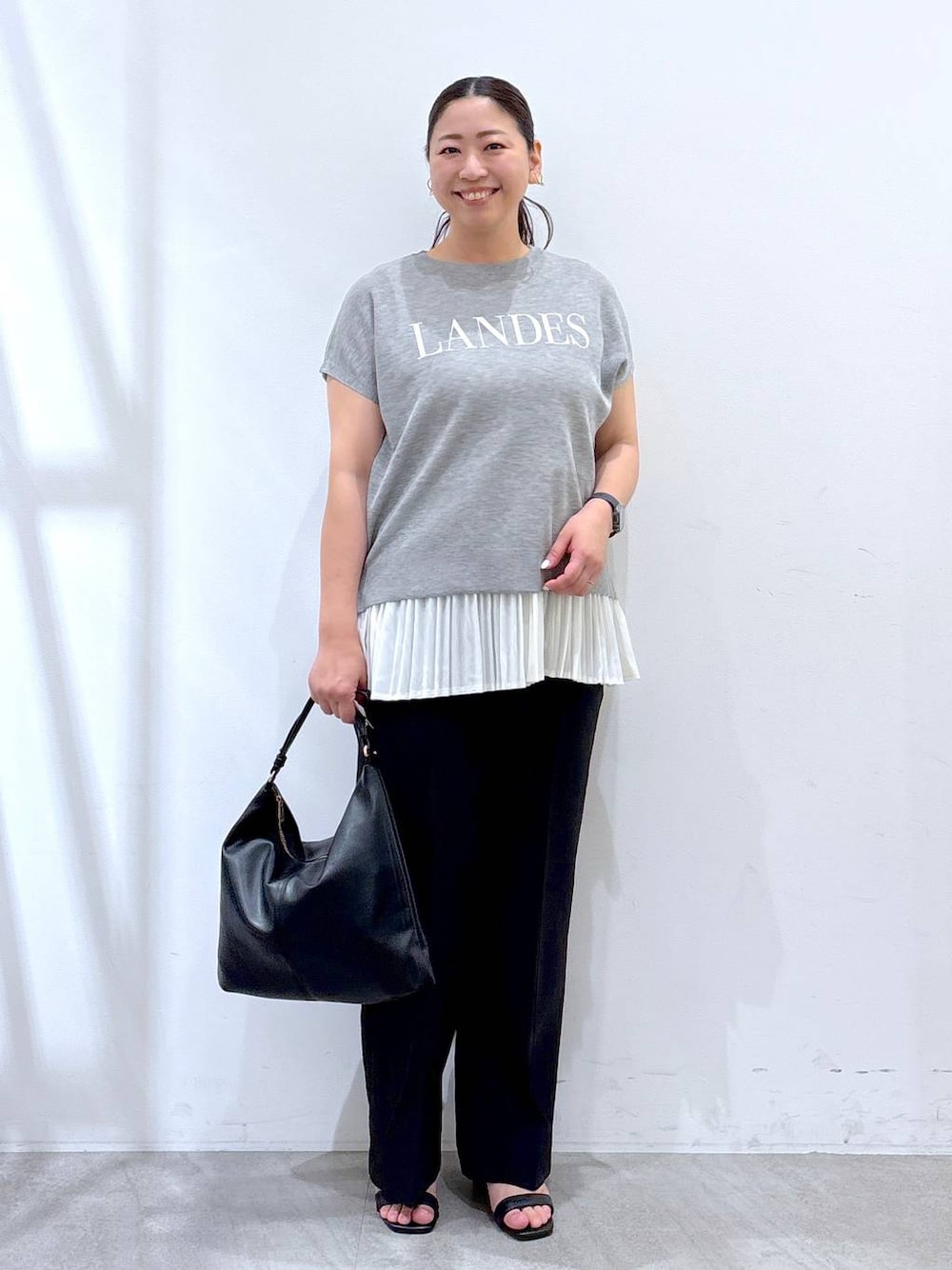 《158cm/サイズ&着用感》 着用は全てレギュラーサイズを着用しています。 ▶︎はつなボディサイズ 身長158cm 体重62kg〜64kg 胸囲95cm ウエスト78cm ヒップ98cm 二の腕30cm 足24.5cm (24cmよりの中途半端サイズ) ▶︎ニットFREEサイズ 一見、シンプルなロゴニットですが、1枚でサラッと着やすい柔らかく軽い生地と、身体のラインを拾わず華奢見えさせてくれるデザインが着るだけでシルエットを綺麗に見せてくれます。 これからの季節にぴったりなシアー素材が、インナーでコーディネートのアレンジをしたりと着回し幅も広げてくれる1枚です。 ▶︎パンツLサイズ シャリ感のある夏にぴったりな通気性の良い生地と、センタープレスデザインが縦のラインをすっきり見せてくれるフレアパンツ。 裾のみフレアデザインで、骨盤から膝にかけてはストレートに近いシルエットなのでトップスを選ばずに様々な着こなしを楽しんで頂けます。 ▼▽▼▽▼▽▼▽▼▽▼▽ 見て頂き、ありがとうございます! 使用アイテムは下記に記載がございます。 ⚪︎いいね ⚪︎フォロー 嬉しいです、ありがとうございます。 ▲△▲△▲△▲△▲△▲△