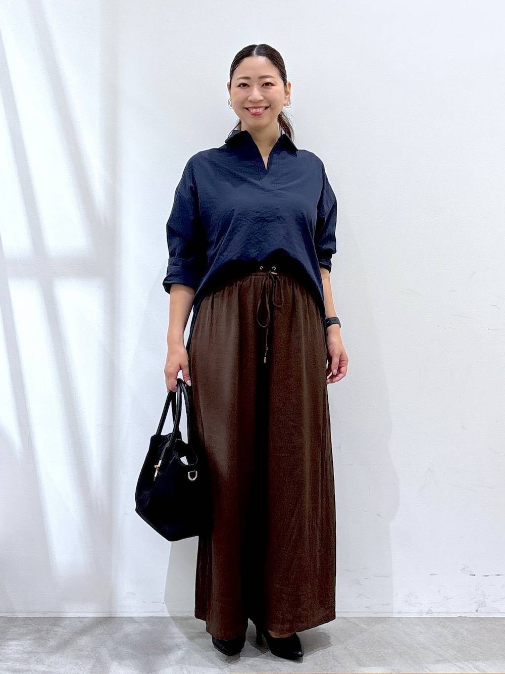 ▶︎シャツFreeサイズ エルーラ1番人気シャツシリーズのアイロンイラズシャツ!! 季節問わずに着て頂けるベーシックカラーと、風通しの良いゆったりとしたサイズ感が長く着れるシャツ。 スキッパデザインが着るだで顔まわりをすっきりとした印象にさせ、バックボタンが縦のラインを強調する事で凛としたバックシルエットにしてくれます。 158cmでおしりがしっかり隠れる丈感で、流行り廃りなく着回せるシンプルなデザインが1枚でもカーディガンやニットを重ねても楽しめる1枚です。 ▶︎パンツMサイズ サラサラと落ち感がある柔らかな生地感が、これからの時期に着やすい1枚。 ウエスト後ろ部分がゴムで、お腹周りもリラックスできて腰から緩やかなワイドデザインが身体のシルエットを拾わずに着て頂けます。 ヒップ周りもふくめ、全体的にゆったりサイズです。 軽く、足捌きも楽で安心してデイリー使い頂けるワイドパ ンツ。 ▼▽▼▽▼▽▼▽▼▽▼▽ 見て頂き、ありがとうございます! 使用アイテムは下記に記載がございます。 ⚪︎いいね ⚪︎フォロー 嬉しいです、ありがとうございます。 ▲△▲△▲△▲△▲△▲△と