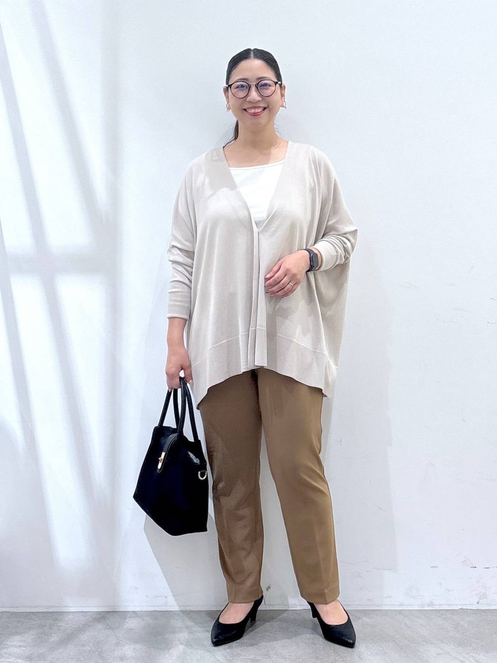 《158cm/サイズ&着用感》 着用は全てレギュラーサイズを着用しています。 ▶︎はつなボディサイズ 身長158cm 体重62kg〜64kg 胸囲95cm ウエスト78cm ヒップ98cm 二の腕30cm 太もも59.8cm 足24.5cm (24cmよりの中途半端サイズ) ▶︎カーディガンFREEサイズ 夏に着ても安心な薄め生地のサラサラカーディガン。 柔らかくサラサラした着心地が縦のシルエットをしっかり演出してくれる落ち感があり、すっきりとした印象で着て頂けます。 接触冷感、UVカット、毛玉になりにくの機能付きで初夏から秋まで長く着て頂ける1枚。 夏の日焼け対策はもちろん、室内の空調対策にも便利なカーディガンです。 サイズ感はゆったりめですが、袖口のリブデザインやすっきり見えするVネックデザインがだぼっと見えせず着ていただけます。 ▶︎ボトムスLサイズ エルーラのボトムで1番ストレッチが効いている、履き心地、動きやすさNO1のテーパードパンツ! 毎回人気カラーは完売する人気アイテムです。 ウエストはゴムなのに、腰位置から入ったセンタープレスが脚を綺麗に長く見せ、後ろの高位置にデザインされたポケットがヒップを高く見せてくれるので、履くだけでシルエットが整う美脚設計! イージーケアも嬉しいポイントです。 ▼▽▼▽▼▽▼▽▼▽▼▽ 見て頂き、ありがとうございます! 使用アイテムは下記に記載がございます。 ⚪︎いいね ⚪︎フォロー 嬉しいです、ありがとうございます。 ▲△▲△▲△▲△▲△▲△