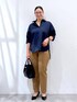 ▶︎はつなボディサイズ 身長158cm 体重62kg〜64kg 胸囲95cm ウエスト78cm ヒップ98cm 二の腕30cm 太もも59.8cm 足24.5cm (24cmよりの中途半端サイズ) 着用は全てレギュラーサイズを着用しています。 ▶︎シャツFreeサイズ エルーラ1番人気シャツシリーズのアイロンイラズシャツ!! 季節問わずに着て頂けるベーシックカラーと、風通しの良いゆったりとしたサイズ感が長く着れるシャツ。 スキッパデザインが着るだで顔まわりをすっきりとした印象にさせ、バックボタンが縦のラインを強調する事で凛としたバックシルエットにしてくれます。 158cmでおしりがしっかり隠れる丈感で、流行り廃りなく着回せるシンプルなデザインが1枚でもカーディガンやニットを重ねても楽しめる1枚です。 ▶︎ボトムスLサイズ エルーラのボトムで1番ストレッチが効いている、履き心地、動きやすさNO1のテーパードパンツ! 毎回人気カラーは完売する人気アイテムです。 ウエストはゴムなのに、腰位置から入ったセンタープレスが脚を綺麗に長く見せ、後ろの高位置にデザインされたポケットがヒップを高く見せてくれるので、履くだけでシルエットが整う美脚設計! イージーケアも嬉しいポイントです。 ▼▽▼▽▼▽▼▽▼▽▼▽ 見て頂き、ありがとうございます! 使用アイテムは下記に記載がございます。 ⚪︎いいね ⚪︎フォロー 嬉しいです、ありがとうございます。 ▲△▲△▲△▲△▲△▲△