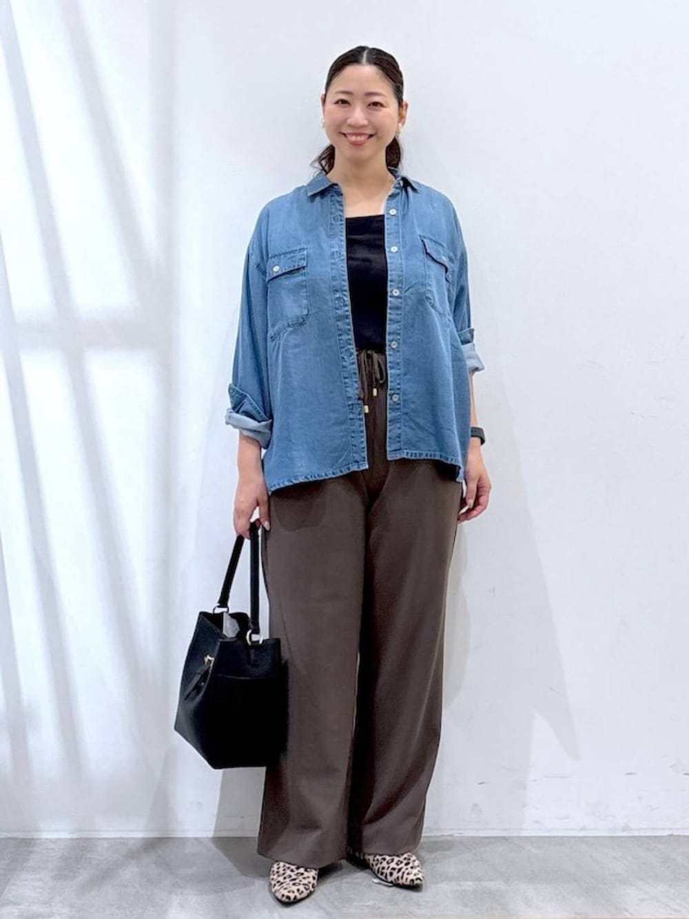 ▶︎はつなボディサイズ 身長158cm 体重62kg〜64kg 胸囲95cm ウエスト78cm ヒップ98cm 二の腕30cm 太もも59.8cm 足24.5cm (24cmよりの中途半端サイズ) ▶︎シャツFREEサイズ ゆったりしたサイズ感が柔らかな生地でも身体のシルエットを拾わず、さらっと着ていただける1枚。 ベーシックなデザインがどんなコーディネートにも合わせやすく、飽きずに長く着回して頂けます! ゆったりしたデザインとシンプルなボタンが大人カジュアルにぴったりなデニムシャツです。 ▶︎ボトムスMサイズ エルーラのボトムで1番ストレッチが効いている、履き心地、動きやすさNO1のワイドパンツ! 毎回人気カラーは完売する人気アイテムです。 ウエストはゴムなのに、腰位置高めの切り替えデザインが脚を綺麗に長く見せ、履くだけでシルエットが整う美脚設計! イージーケアも嬉しいポイントです。 ▼▽▼▽▼▽▼▽▼▽▼▽ 見て頂き、ありがとうございます! 使用アイテムは下記に記載がございます。 ⚪︎いいね ⚪︎フォロー 嬉しいです、ありがとうございます。 ▲△▲△▲△▲△▲△▲△