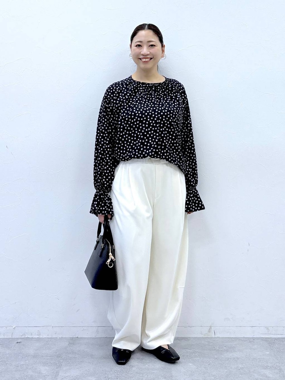 ▶︎はつなボディサイズ 身長158cm 体重62kg〜64kg 胸囲95cm ウエスト80cm ヒップ96cm 二の腕30cm 足24.5cm (24cmよりの中途半端サイズ) ▶︎トップスFREEサイズ 全体的にゆとりのあるサイズ感で、私の厚みのある上半身でも身体のラインを拾うことなく適度なゆとりが華奢見えさせてくれるブラウス。 一見シンプルなデザインですが、袖がベル袖になっており1枚でもニットやカーディガンを重ね着しても袖元がかわいい1枚です。 ベル袖デザイン上部にゴムが入っているので、デザインだけでなく腕を捲ったりする際の実用性もあるためお仕事やお出かけなどにも便利です。 小花柄ですが落ち着いたカラーの組み合わせなので、大人が着ても甘すぎずに着て頂けます。 ▶︎パンツFREEサイズ シルエットが綺麗なカーブパンツ。 スウェット生地がカジュアルな印象になりがちですが、ストンと落ちる美シルエットがカジュアルになりすぎず大人が着やすいスウェットパンツになってます。 カーブシルエットが苦手な方にも着やすいシルエットなので1枚あると楽な履き心地とこなれ感が出せる頼れる1枚です。 ▼▽▼▽▼▽▼▽▼▽▼▽ 見て頂き、ありがとうございます! 使用アイテムは下記に記載がございます。 ⚪︎いいね ⚪︎フォロー 嬉しいです、ありがとうございます。 ▲△▲△▲△▲△▲△▲△