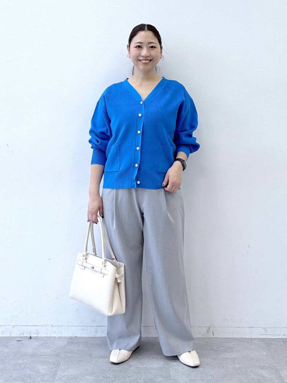 ▶︎はつなボディサイズ 身長158cm 体重62kg〜64kg 胸囲95cm ウエスト80cm ヒップ96cm 二の腕30cm 足24.5cm (24cmよりの中途半端サイズ) ▶︎トップスFREEサイズ チクチク感なく着れるニットカーディガン。 もっちりとした柔らかな生地と、適度な肉厚感が季節の変わり目に使いやすい1枚。 Vネックデザインが顔まわりすっきりさせ、リブ編みが縦ラインをしっかり強調してくれるのでゆるっとしたフォルムでも着膨れ感なく着ていただけます。 パールボタンが品のある印象でお仕事やプライベートで着回しやすい1枚です。 ▶︎ボトムスMサイズ 履き心地も楽ちん!ウエストゴムのワイドパンツ。 落ち感のある生地と、すっきり見えするシルエットが履くだけで脚長効果を叶えてくれます。 中に着込める余裕もあるのでシーズンレスで着用できます。 ワイドシルエットでも自転車安心なのでON/OFFデイリー使い出来るワイドパンツです。 ▼▽▼▽▼▽▼▽▼▽▼▽ 見て頂き、ありがとうございます! 使用アイテムは下記に記載がございます。 ⚪︎いいね ⚪︎フォロー 嬉しいです、ありがとうございます。 ▲△▲△▲△▲△▲△▲△