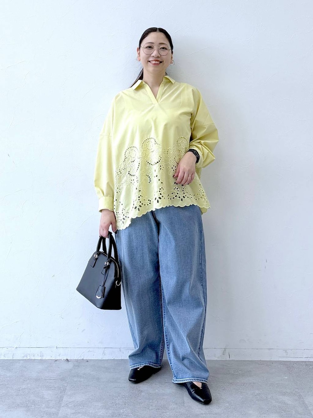 ▶︎はつなボディサイズ 身長158cm 体重62kg〜64kg 胸囲95cm ウエスト80cm ヒップ96cm 二の腕30cm 足24.5cm (24cmよりの中途半端サイズ) ▶︎ブラウスFREEサイズ 胸下からデザインされたカットレースが華やかなブラウス。 レースですが甘くなり過ぎないよう、襟ぐりがスキッパーデザインなので顔まわりすっきりと、少しフレアなシルエットですが袖口はきちんと感のある仕様なので大人女性が着やすいバランスのブラウスです。 後ろ丈はお尻がしっかり隠れる丈なので、パンツはもちろんナロースカートなどとも相性よく着て頂けます。 ▶︎ パンツMサイズ ゆったりしたカーブシルエットが足のラインを拾わず、トレンド感のある着こなしを楽しんで頂けるデニムパンツ。 私の体型で、中にレギンス履いても問題ないサイズ感なので年中通して着て頂ける1本です。 一見普通のデニムですが、ウエスト後ろがゴムなので楽な履き心地で着て頂けます。 ▼▽▼▽▼▽▼▽▼▽▼▽ 見て頂き、ありがとうございます! 使用アイテムは下記に記載がございます。 いいね フォロー 嬉しいです、ありがとうございます。 ▲△▲△▲△▲△▲△▲△