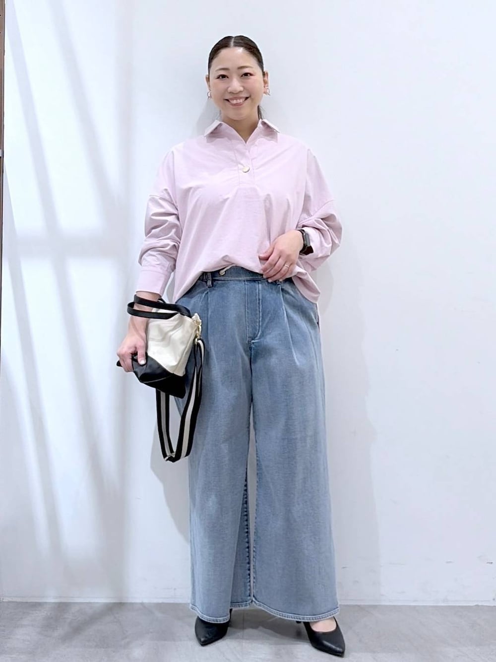 ▶︎はつなボディサイズ 身長158cm 体重62kg〜64kg 胸囲95cm ウエスト80cm ヒップ96cm 二の腕30cm 足24.5cm (24cmよりの中途半端サイズ) ▶︎シャツFREEサイズ  エルーラの人気アイテム「アイロンイラズ」シリーズのスキッパーシャツ。 季節問わずに着て頂けるベーシックカラーと、身体のシルエットを拾わないゆとりのあるサイズ感がシーズン問わず長く着ていただけます。 スキッパーデザインが着るだで顔まわりをすっきりとした印象にしてくれる1枚。 158cmでおしりがしっかり隠れる丈感で、流行り廃りなく着回せるシンプルなデザインが1枚でもカーディガンやニットを重ねても楽しめる1枚です。 ▶︎ パンツMサイズ ゆとりのあるワイドシルエットが足のラインを拾わず、ウエスト前にあるタックが縦のラインをしっかり作ってくれるので綺麗なシルエットで履いて頂けるデニムパンツ。 私の体型で、中にレギンス履いても余裕があるサイズ感なので年中通して着て頂ける1本です。 一見普通のデニムですが、ウエスト後ろがゴムなので楽な履き心地で着て頂けます。 前の紐でウエスト部分は少し調整が可能です。 ▼▽▼▽▼▽▼▽▼▽▼▽ 見て頂き、ありがとうございます! 使用アイテムは下記に記載がございます。 いいね フォロー 嬉しいです、ありがとうございます。 ▲△▲△▲△▲△▲△▲△