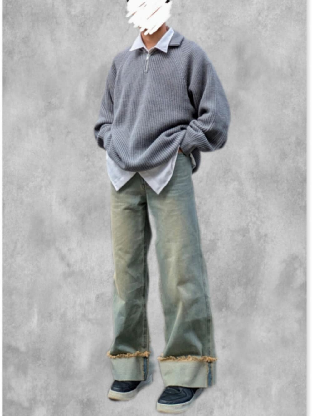 ご覧いただきありがとうございます。 今日はハーフジップニットを使ったコーデ 下にシャツをレイヤードして一抜けさせてます ニットがとてもかわいいです! ゆるく行きたいときにどーぞ