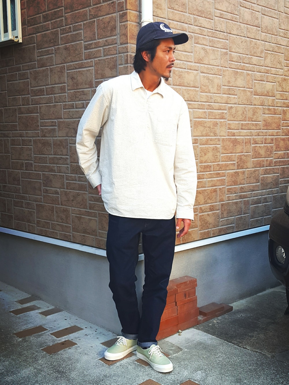 ・55DSL キャップ ・Pilgrim Surf+Supply シャツ ×VANS スニーカー ・THE NORTH FACE PURPLE LABEL デニム