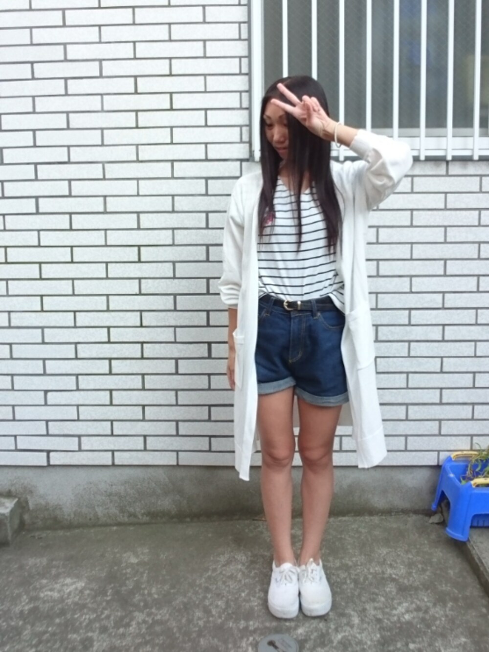 ✨INGNI…ロングカーディガンこーで✨ ✨おNew✨前後刺繍入りV衿プルオーバー×デニムショーパンをあわせて🌹✨ ボーダーに、刺繍入りが、ずっと欲しくて〜😆🌹✨⤴⤴ 見つけちゃいました🙈🌹💕⤴⤴しかも…お安く😆💕⤴⤴ デザインも、変わってて〜😆💕⤴⤴お気に入り❤ 沢山…あわせたいアイテムあるから〜😆💕⤴⤴めちゃめちゃ…わくわく😆💓💓してます⤴⤴ カーデで、ちょっと分かりにくくて…ごめんなさい🙈💦💦 今回の小窓…🌴✨ 別アングルバージョン😌💓