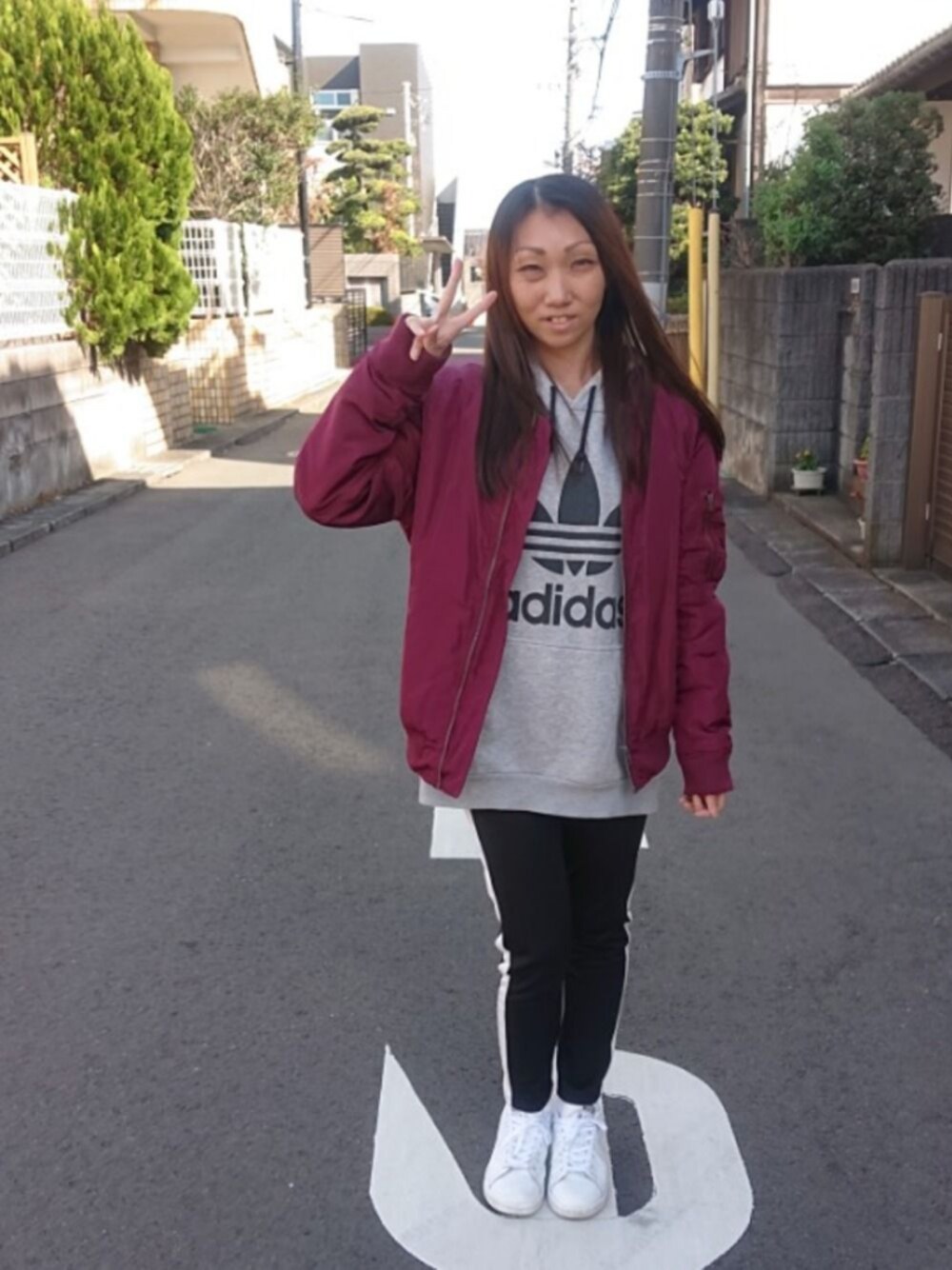✨WEGO…ボルドーMA-1コーデ✨ アウター有りバージョン✨ The、スポーツMix…いや、スポーツコーデだね〜😂💦💦 お仕事行くのに、やっぱりカジュアルが、楽チンで〜 カジュアルコーデばっかに、なっちゃう〜 ※小窓…別アングルバージョン✨