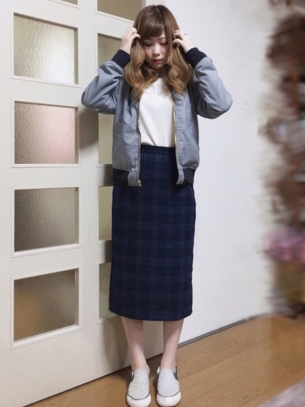 Mii◎のブルゾン「リバーシブルチェックブルゾン」を使ったコーディネート