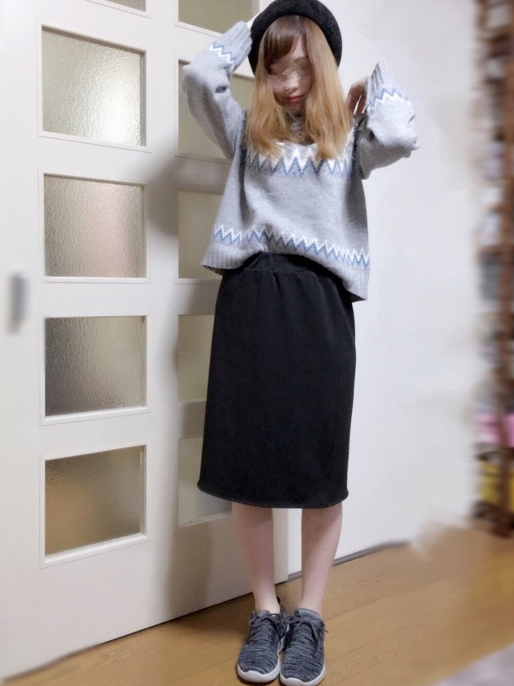 オーバーサイズが今時なんだろうけど どうしても私はコンパクトに見せたい😭🤚 てことでジャストサイズです◎ 以前購入したノルディック柄のニットは ショート丈でインしないで着ても可愛い🌷 タイトスカートは社会人成り立ての頃に 精一杯背伸びしようとした痕跡(笑) ニット M(one size) スカート F スニーカー 23.5