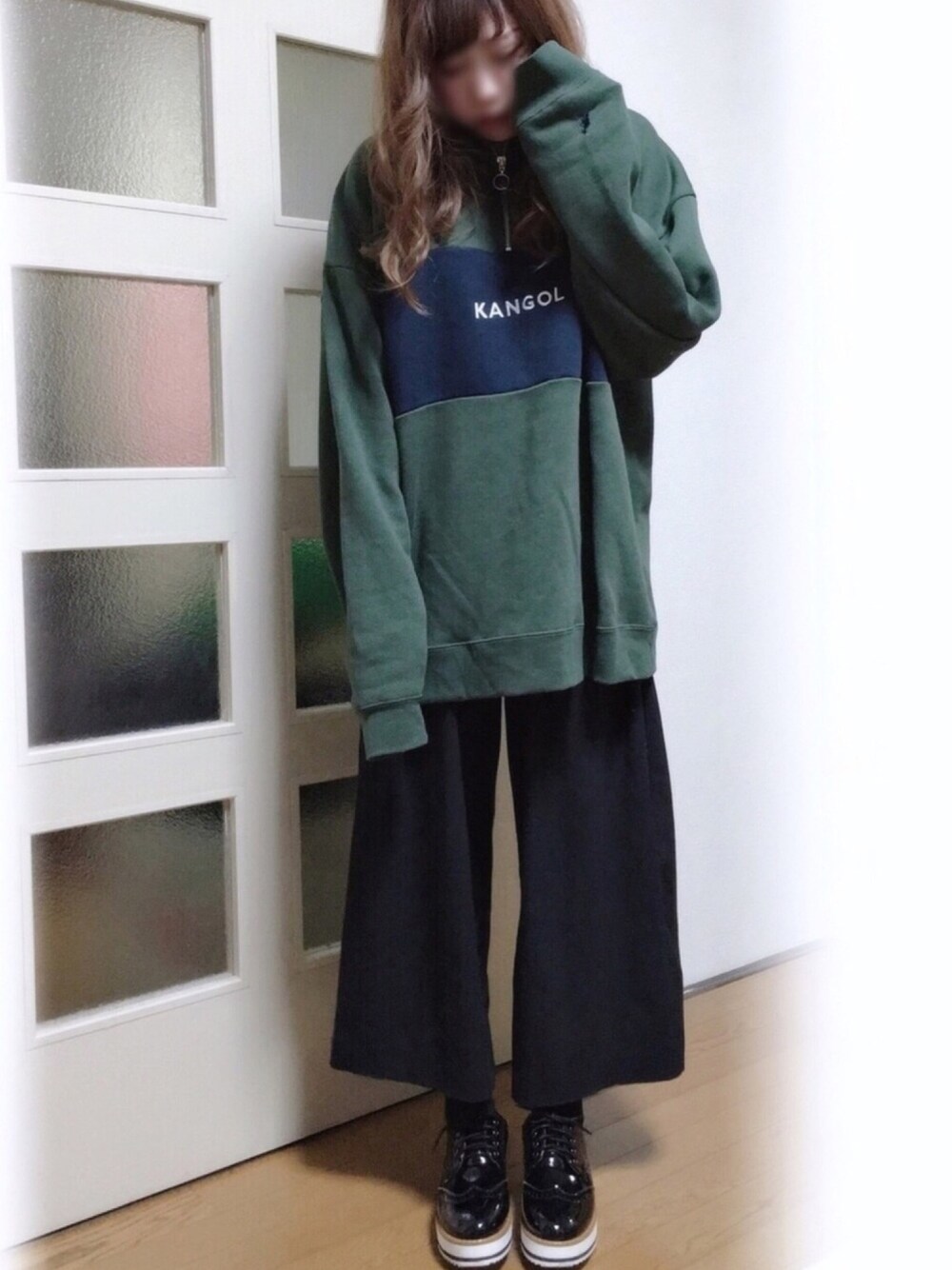 Mii◎のスウェット「WEB限定 KANGOL×FREAK'S STORE/カンゴール 別注ビッグシルエット ハーフジップスウェット/オーバーサイズカットソー」を使ったコーディネート
