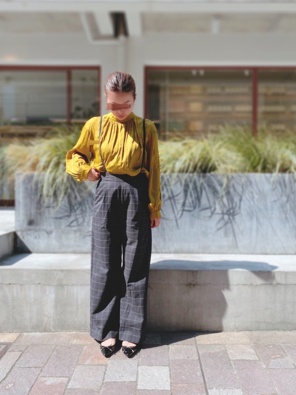 yamadaのシャツ/ブラウス「サテンスタンドギャザーブラウス」を使ったコーディネート