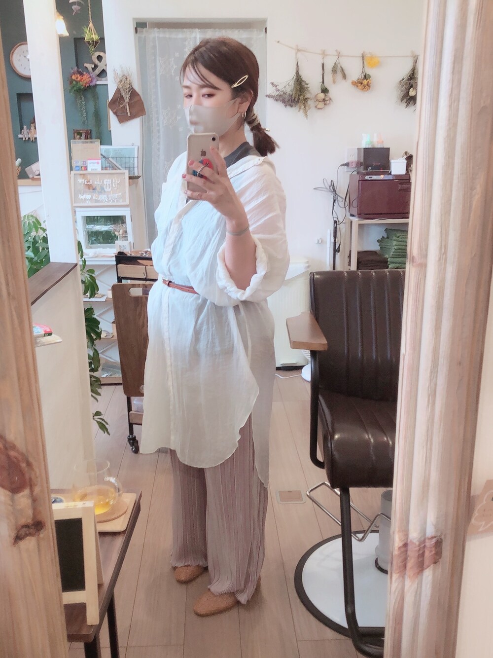 ご覧頂きありがとうございます♥ ロングシャツにリブパンツで リラックススタイル。