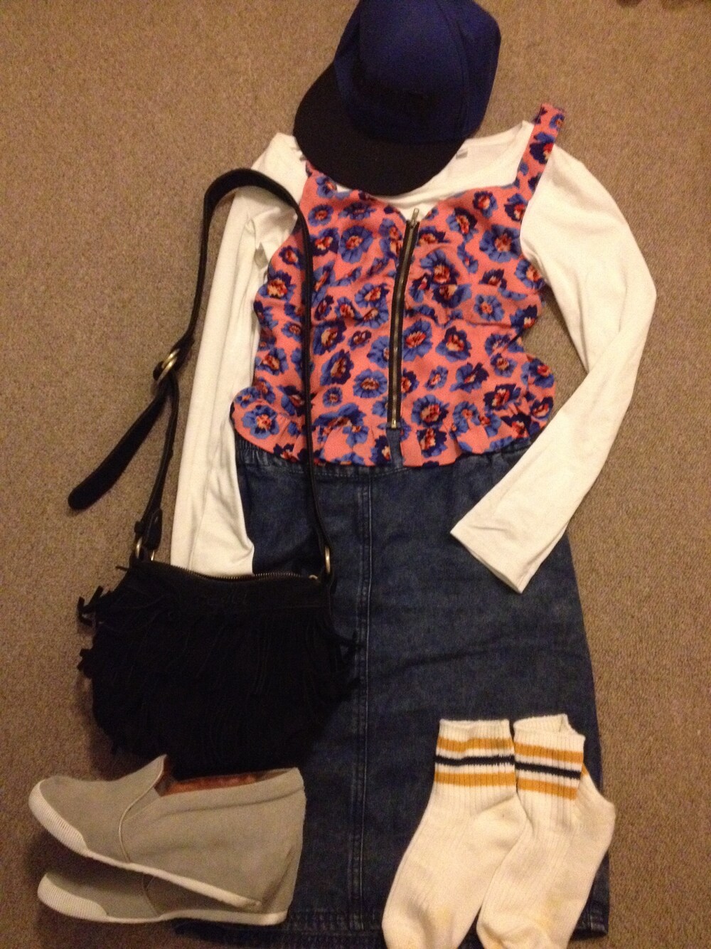お気に入りビスチェ♡ 派手な花柄とフリルがかわいい! kastaneのお姉さんにお褒めの言葉をいただきました(ノω`*) 前回のコーデ、たくさんのお気に入りありがとうございました\( ˆoˆ )/