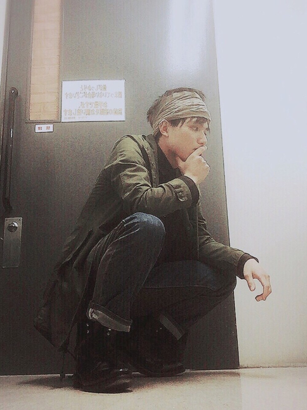 何系統かわからないけど適当に組み合わせ 友人からは旅芸人、浮浪者、傭兵、ガンダムに出てきそうなど様々な感想が寄せられました笑 バンダナのせいで色物感出てますな バンダナはもらいものです アウターはシップスのコート シャツはスミスズアメリカンの黒シャツ ボトムはビームスのデニム、これは前後で生地の色が違う代物です 靴はイレイの黒革ブーツ オール古着コーデです