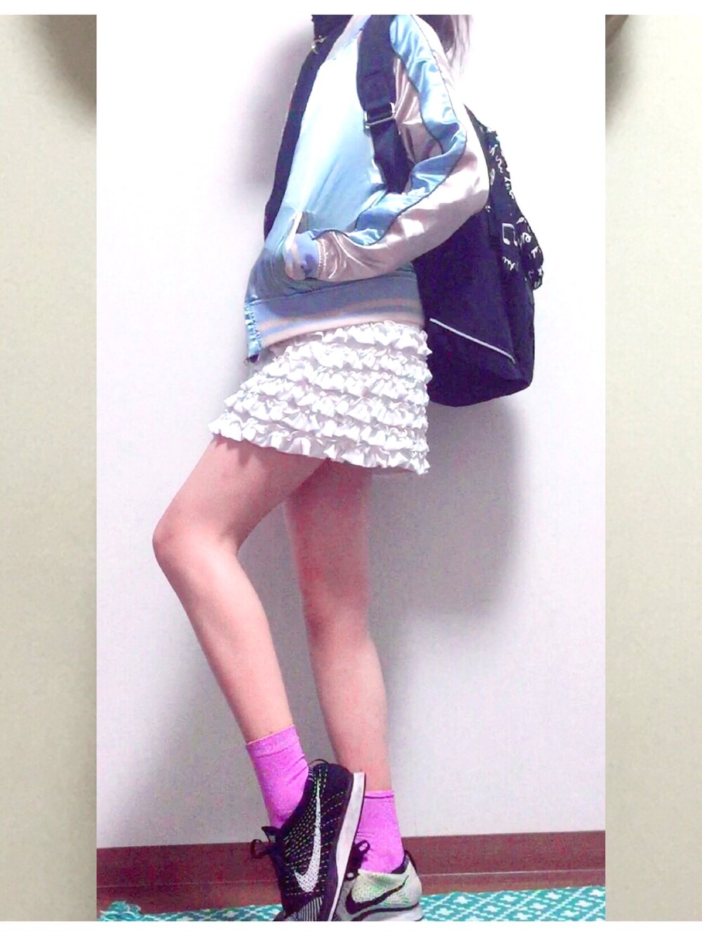 写真撮り方へたくそか。笑 このスタジャンリバーシブルなのー!一目惚れで即買い♡ 動きやすさ重視☺️