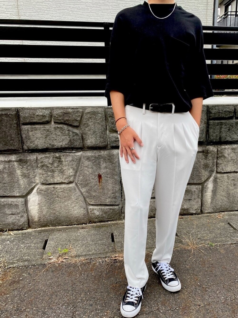 ご覧いただきありがとうございます☺️ Instagramやってるので良ければフォローや 見に来てくだい!👍👍 BLACK×WHITEコーデ ユニクロの白スラックス最強です😎