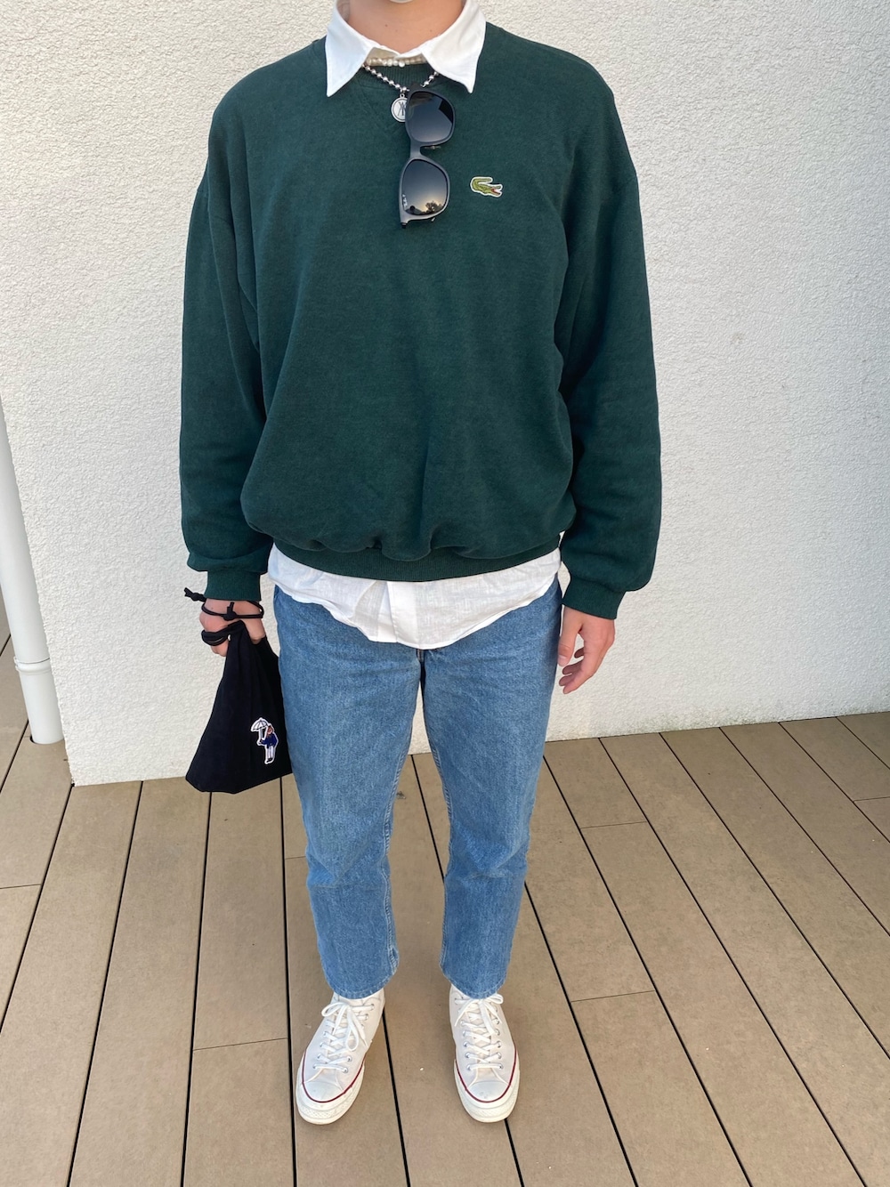 ご覧いただきありがとうございます!! 久しぶりの投稿になります!! 今日は古着のラコステセーターがめちゃ可愛いかったです!!!😍 巾着バックもめちゃ使いやすくていいです❤️🔥 いいねやコメントなどフォローもしていただけるとすごい嬉しいです!🥺 インスタも見てください!!!!