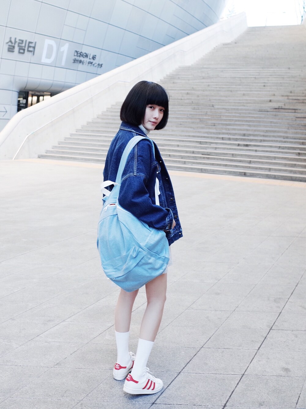 ホワイト系のスニーカーを着用したレディースの冬コーディネートの1枚目の写真