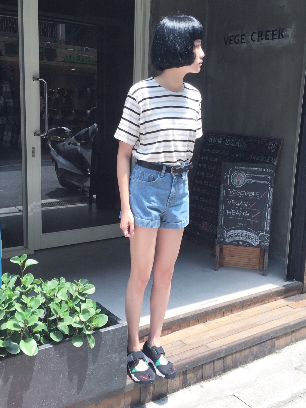 ブラック系のレインシューズを着用したレディースの春コーディネートの1枚目の写真