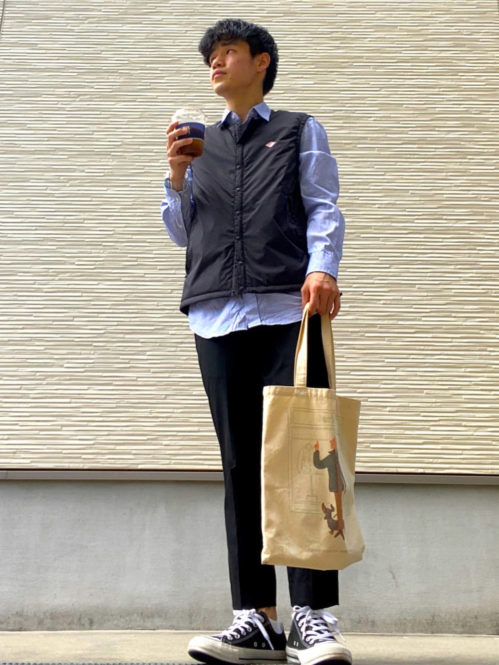 いつも着るシャツに飽きた時は、、、 ダウンベストを合わせるとコーデを楽しむことが出来ます👔🌿 チャック付きのポケットも付くので、大変助かってます🤦♂️ 特にDantonのベストはとてもオススメです✌︎ Barbourのトートも🐶