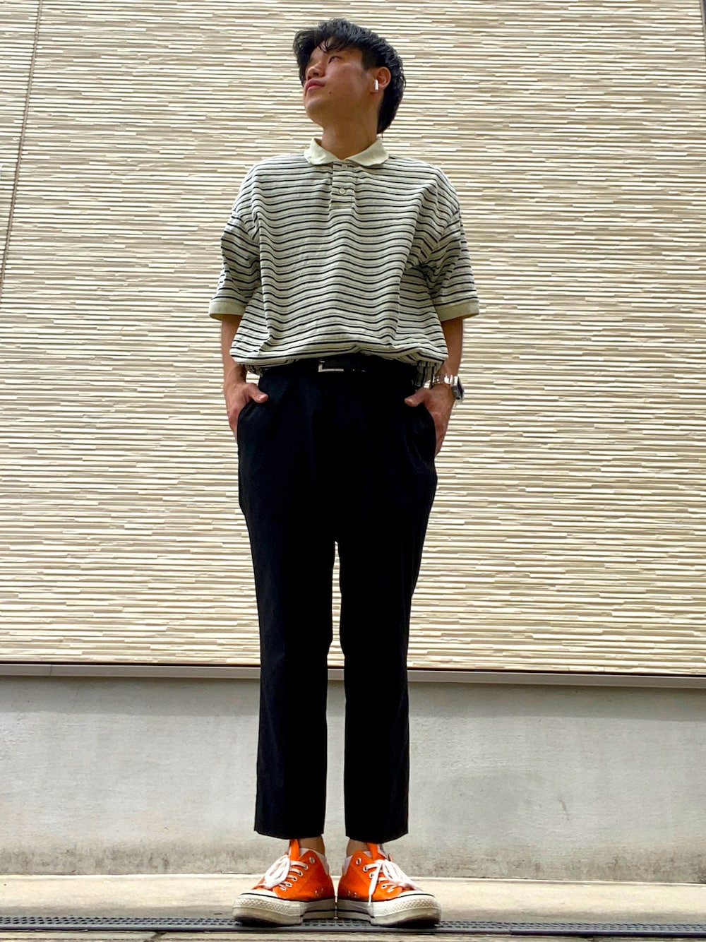今日のポイント✌︎ ①スラックスの黒は、基本何のコーデにも合うので1着あると助かります😌 ②カラーシューズは差し色になるので、VANSのオーセンティックとconverseはオススメです🥝🍒👔 ③ボーダーのポロシャツは、インしてもそのままでも可愛いので、個人的に少し大きめを買うといいかもしれません🙇♂️ 今日も素敵な1日に〜🐶👋
