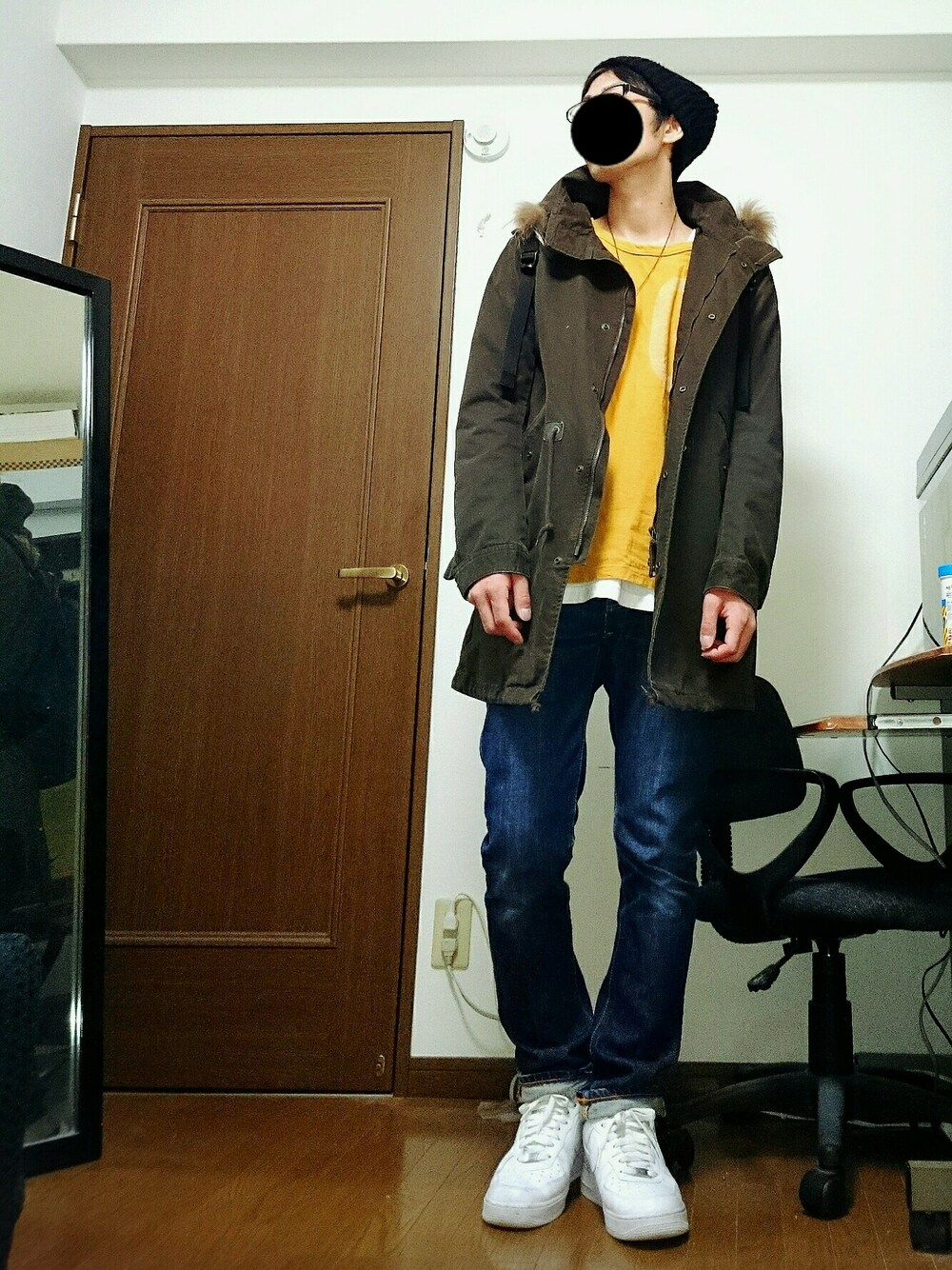 朝寒かったんでモッズコート引っ張り出してきました! インナーはロンTとタンクトップの重ね着で。