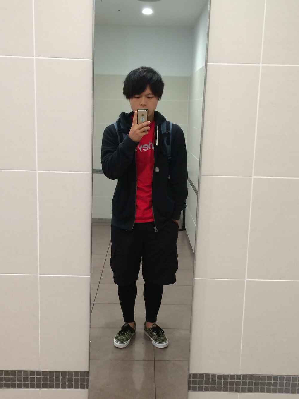 ジップパーカー:ラルフローレン Tシャツ:Hurley ハーフパンツ:ブランド不明 レギンス:ブランド不明 シューズ:VANS