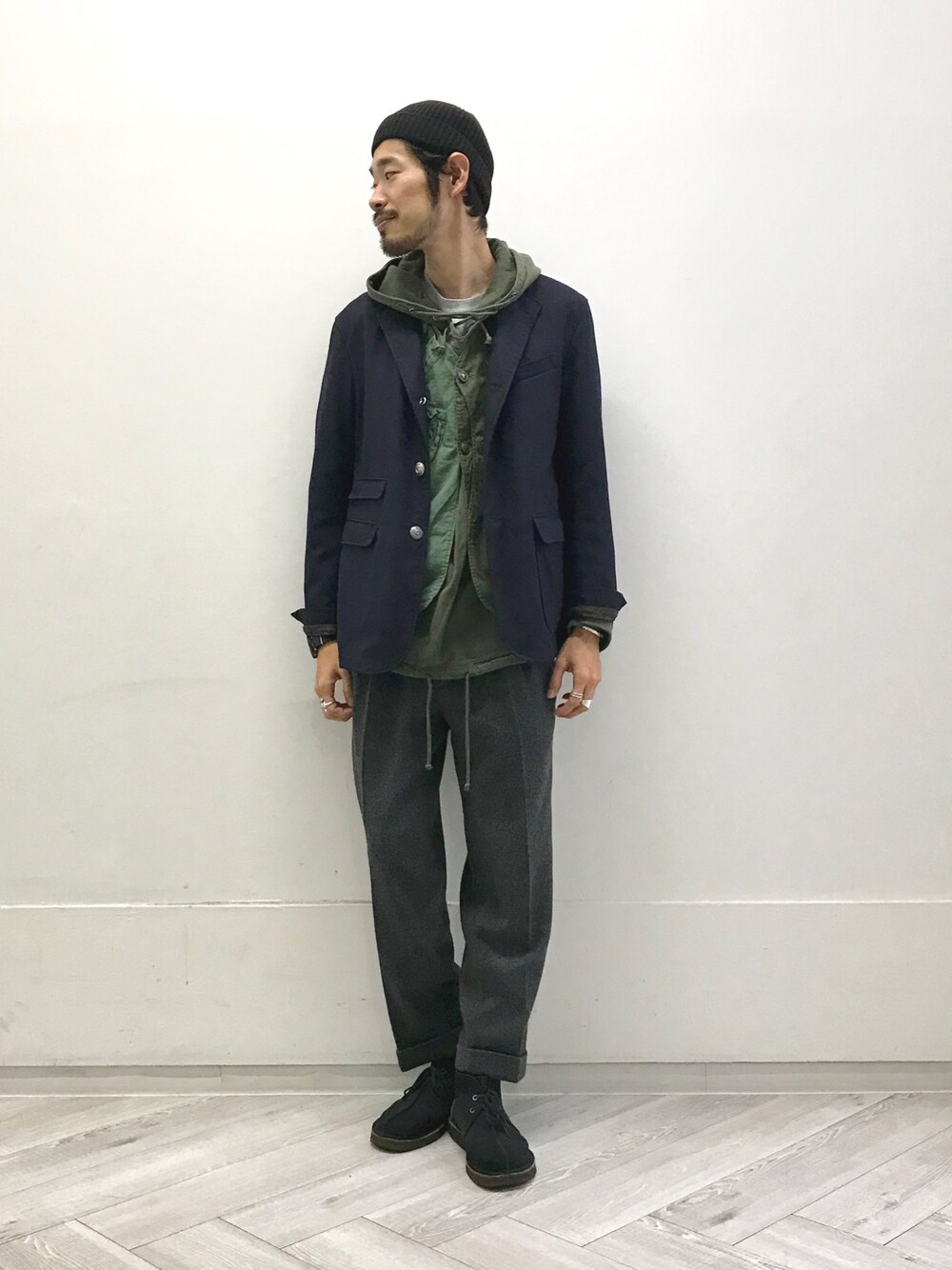 Naoki_Sakuma(BEAMS MEN)のニットキャップ/ビーニー「BEAMS PLUS / コットンリブワッチキャップ 」を使ったコーディネート