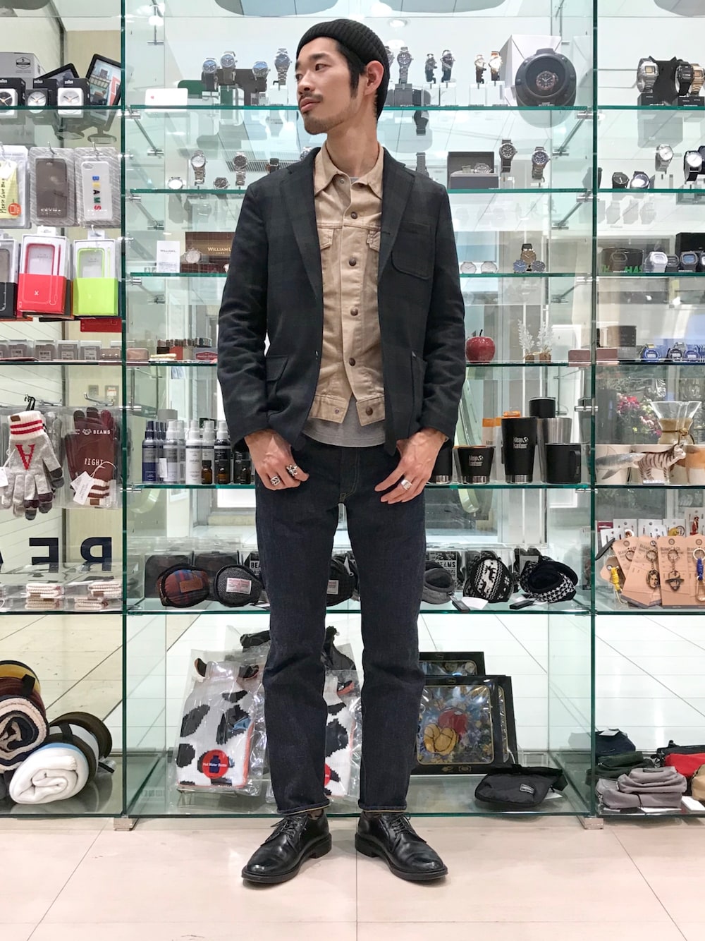 ワークな雰囲気ですが1枚ブラックウォッチの3Bジャケットを羽織ると雰囲気を変えられる気がします。 パンツはRRLとBEAMS PLUSの別注です。 レングスを30にして革靴でもスニーカーでもハマるようにしました。