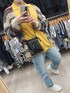 閲覧ありがとうございます。 イエローのオープンカラーシャツにボーダーカーディガン デニムパンツにホワイトスニーカー 初夏らしく明るめカラーで
