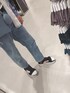 閲覧ありがとうございます デニムに白T、柄シャツの夏爽やかコーデ タックイン、ミニバッグ、サンダル等ちょっとずつ個性も入れつつ、色合いをブルー&ホワイトでまとめました