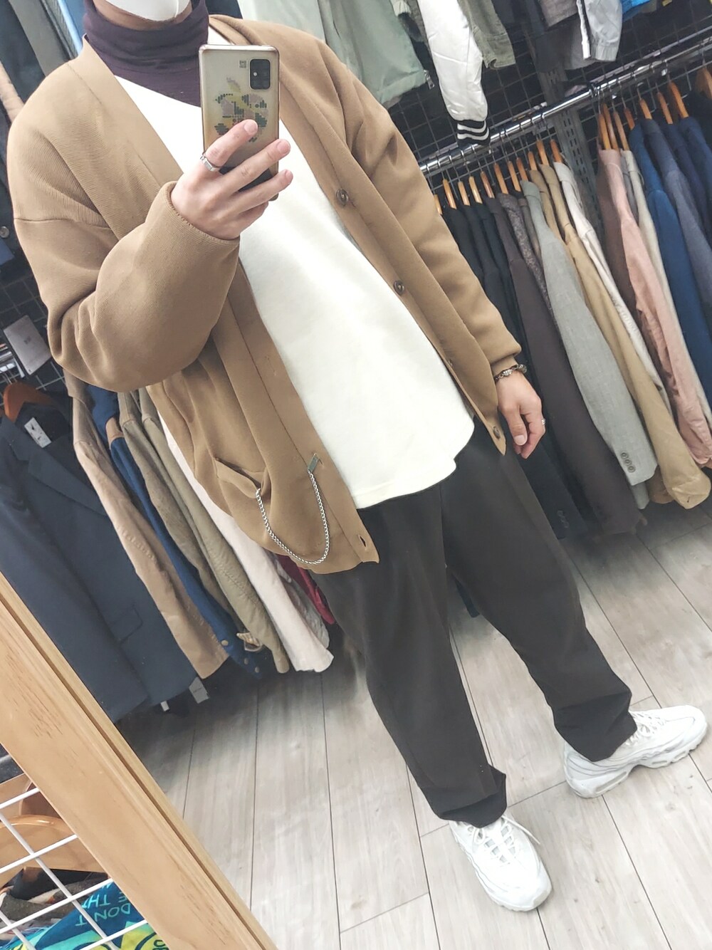 大人カジュアルstyle カーディガン ニット スラックス スニーカー
