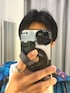 いつもありがとうございます レトロなブルゾンの柄とカラー ワイドブラックデニムに バンドカラーシャツをタックイン 鞄はレザーショルダーに 足元は白のスニーカー