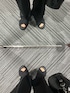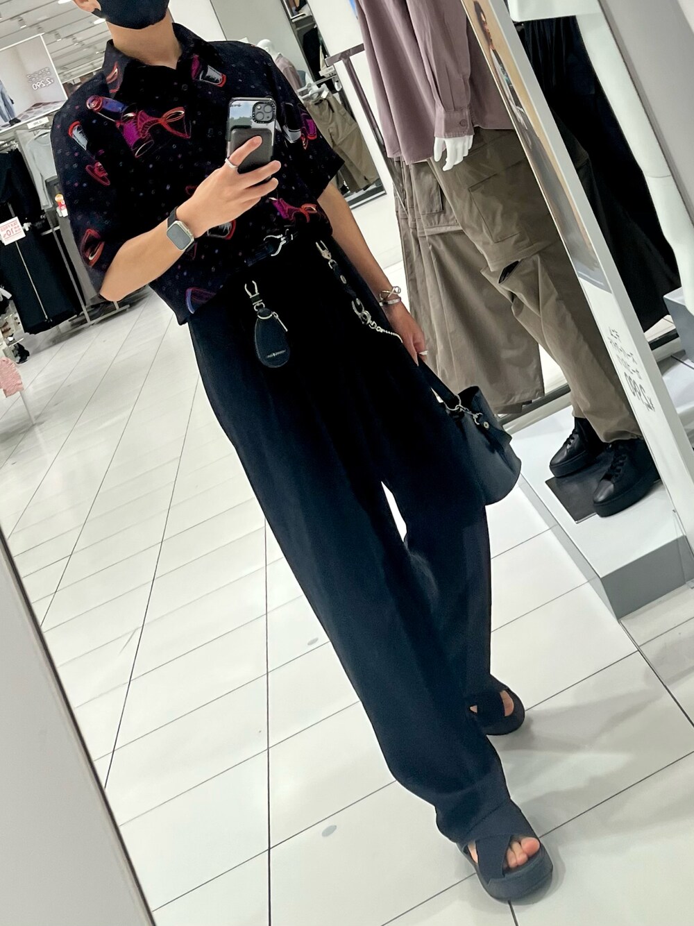 いつもありがとうございます シアー柄シャツにワイドパンツ ハンドバッグと厚底サンダル タックインをしてよりスタイリッシュに