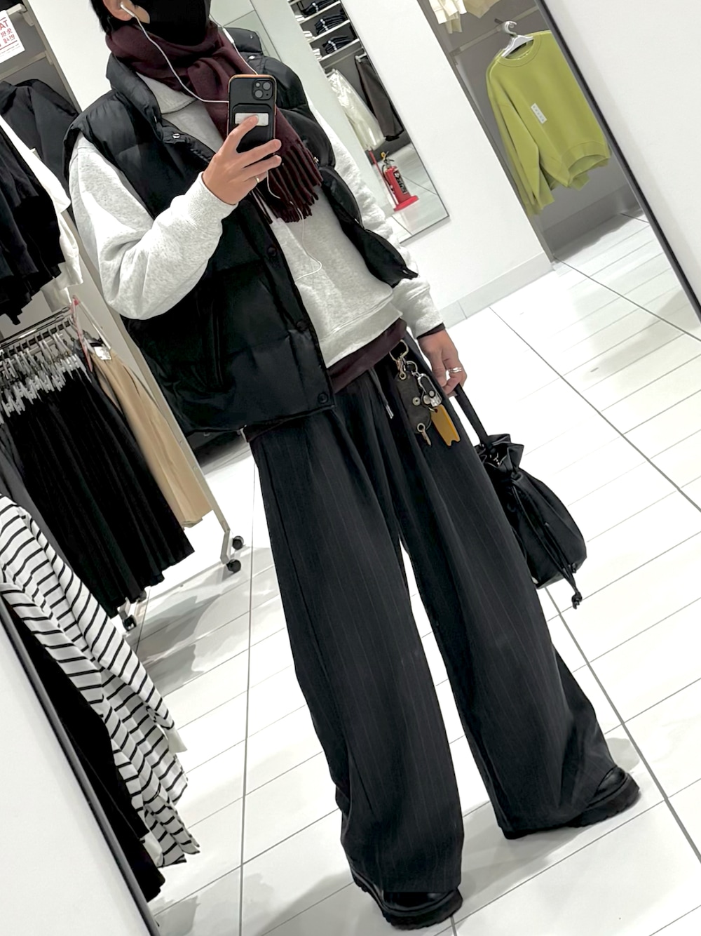 閲覧ありがとうございます 上はハーフジップにダウンベスト タートルネックとマフラーをワインレッドで パンツはワイドストライプ 靴は厚底ローファー 落ち着いた雰囲気の大人コーデ レイヤードも合わせて素敵な休日を過ごしてます 特別支援学校や福祉施設での発表会に参加 頑張っている姿に心打たれました