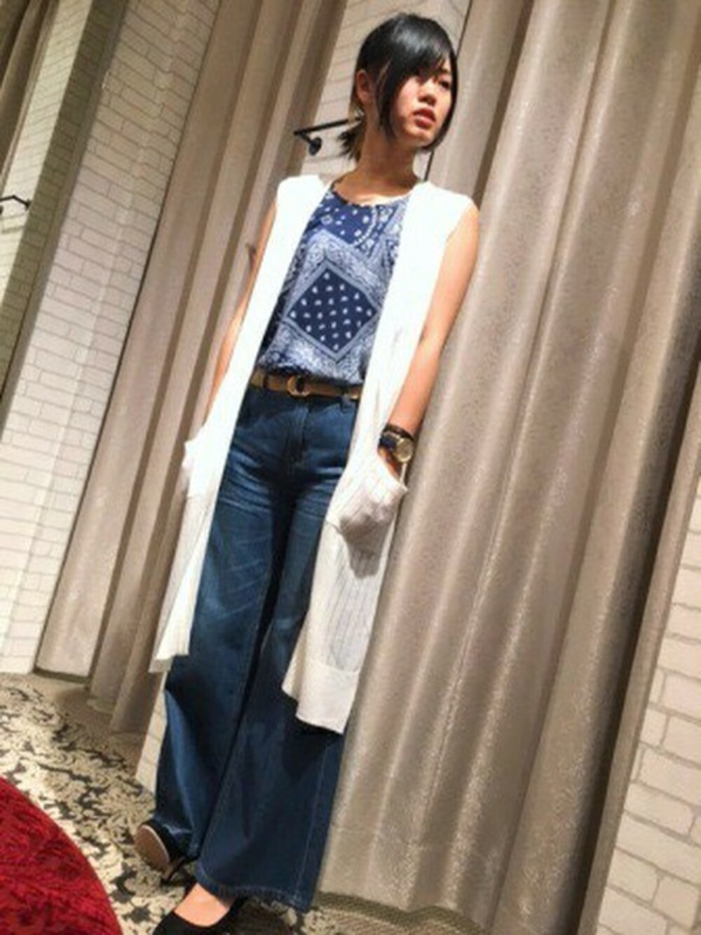 ワイドパンツにロングジレだとバランスが悪くなってしまいがちですが、 トップスをインしてベルトをアクセントにすることで足長効果にもつながります! ロングのカーデなどを羽織るときはインナーをショート丈かボトムにインするとバランスよく見えますよ♪