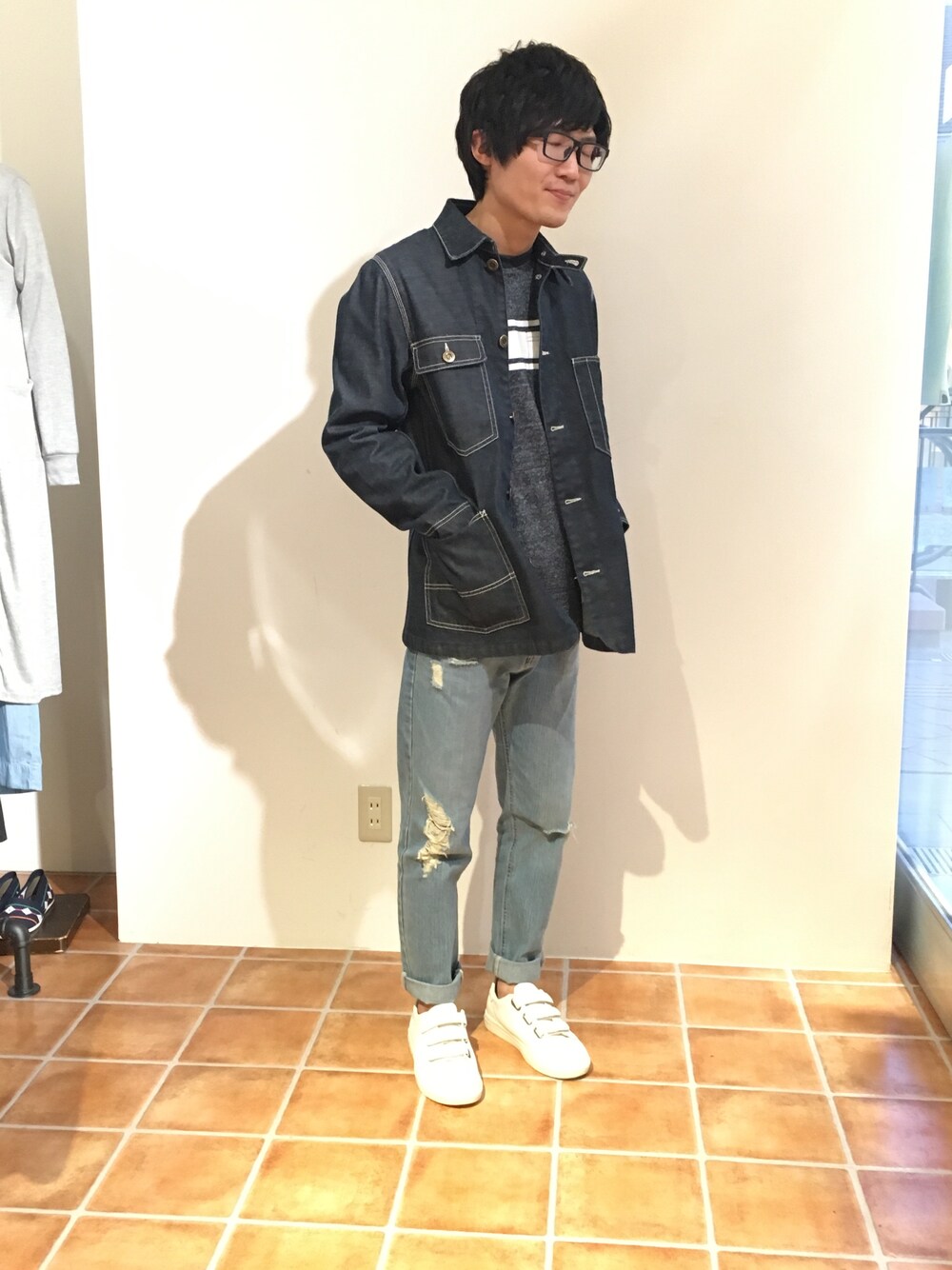 デニムonデニムコーデ。 トレンドのクラッシュデニムでアクセントを加えてみました。