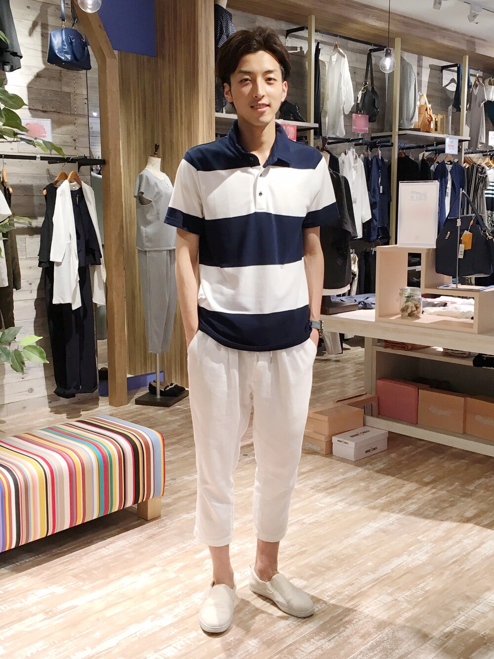 HVCみのお店のポロシャツ「HVC / 鹿の子ボーダーポロシャツ 」を使ったコーディネート