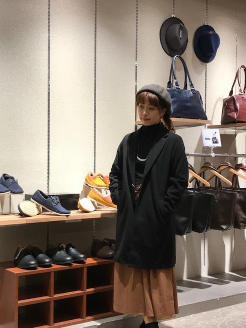 ご覧いただきありがとうございます。 秋色スカートを黒のチェスターコートですっきりとクールにコーディネイトしました。 今、HVCでは期間限定でアウターをお安くお買い求めいただけます。 この機会に、是非ご来店くださいね。