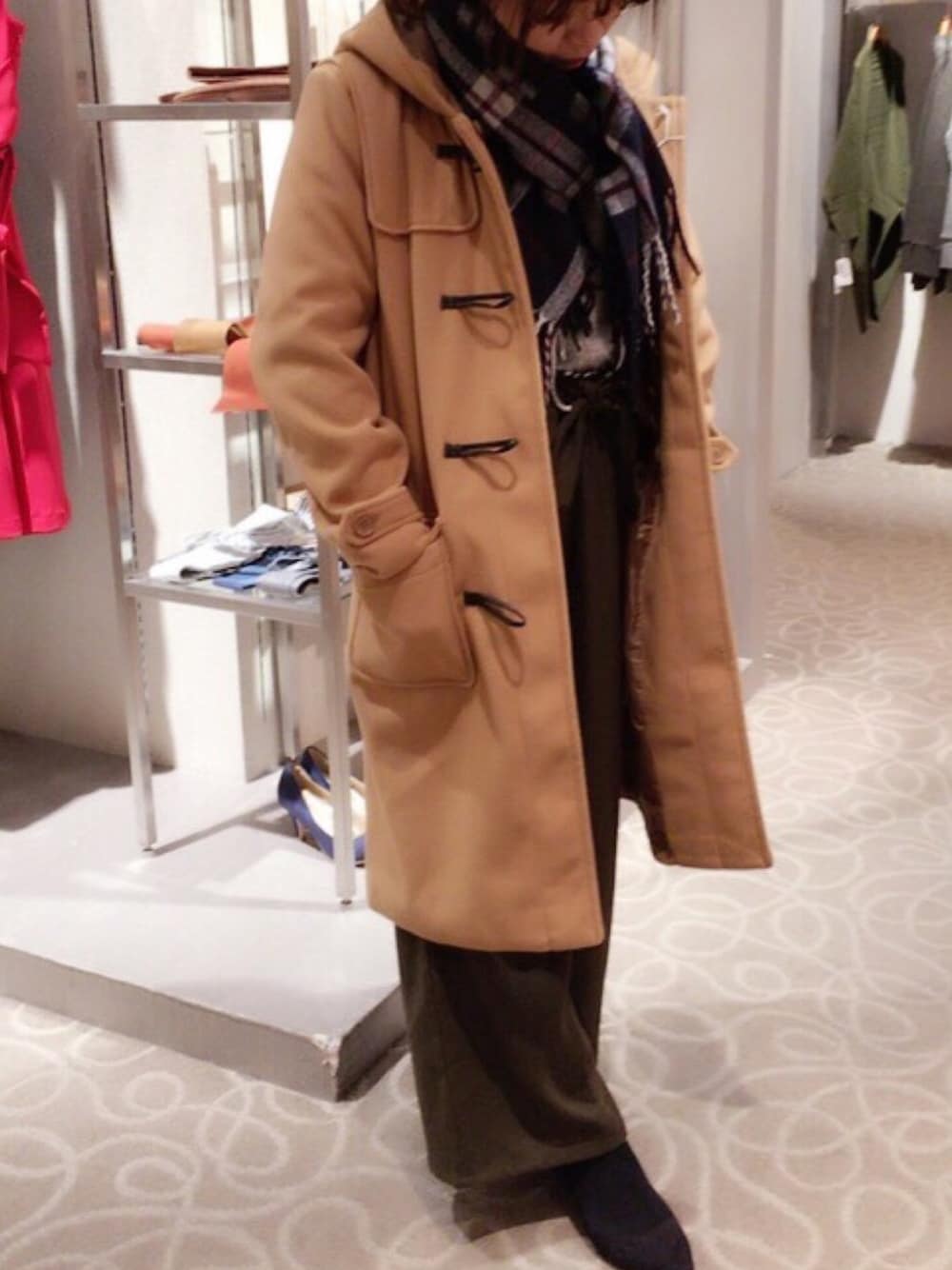 こんにちは ご覧いただきありがとうございます! この冬の定番アイテムにチェックストールをプラスした安定スタイリングです。 派手すぎず、地味すぎず、普段着のおしゃれを楽しんでくださいね。