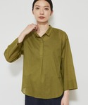 【 ボタニカルダイブラウス 】 普段サイズ: S / 着用サイズ: M 香川県小豆島産のオリーブの花と葉、実から 抽出した染料を一部使用して染めたボタニカルダイの素材です。 素材感は今から着られる薄手のブラウスですが、優しい落ち着いた色合いなので秋までコーディネートを楽しめます。 【 セミワイドデニム 】 普段サイズ: S / 着用サイズ: S 腰の位置が高く見えるデザインのデニムなので、脚長効果があります。 また程よい広さのシルエットなので、トップスを選ばず着回しもできるのも嬉しいポイントです。