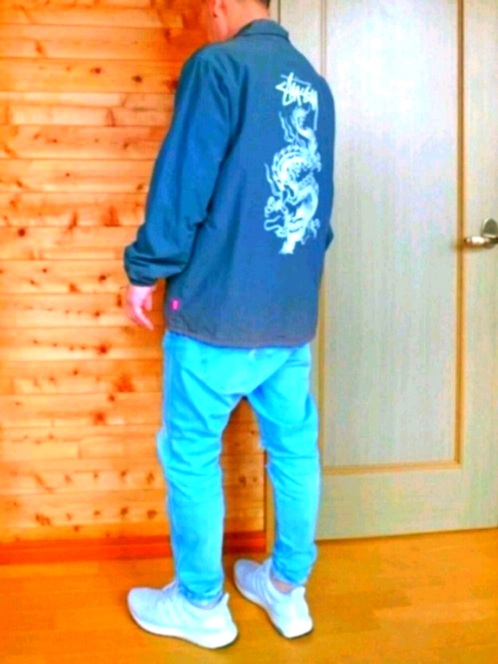 77いいね👍ありがとうございます! STUSSYコーチジャケット ZARAスキニーダメージデニム アディダスブーストトリプルホワイトコーデしてみました(* ̄▽ ̄)