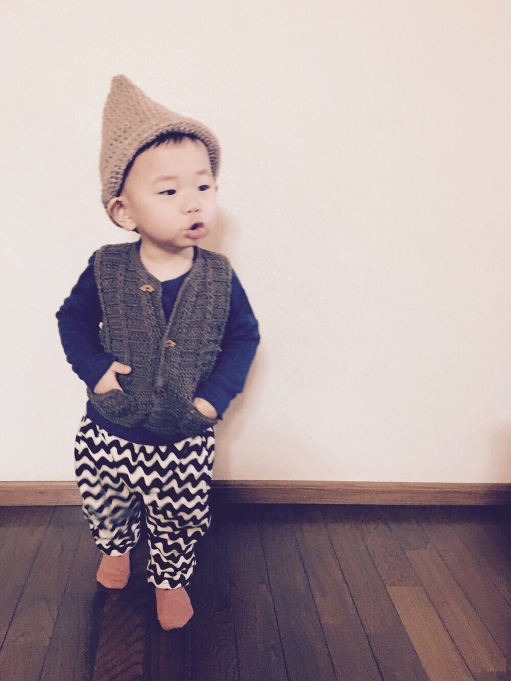 ご覧頂きありがとうございます😊 初めてベスト作ってみました🤗🤗 小人コーデです。 7人のこびとのドーピーイメージ✨✨
