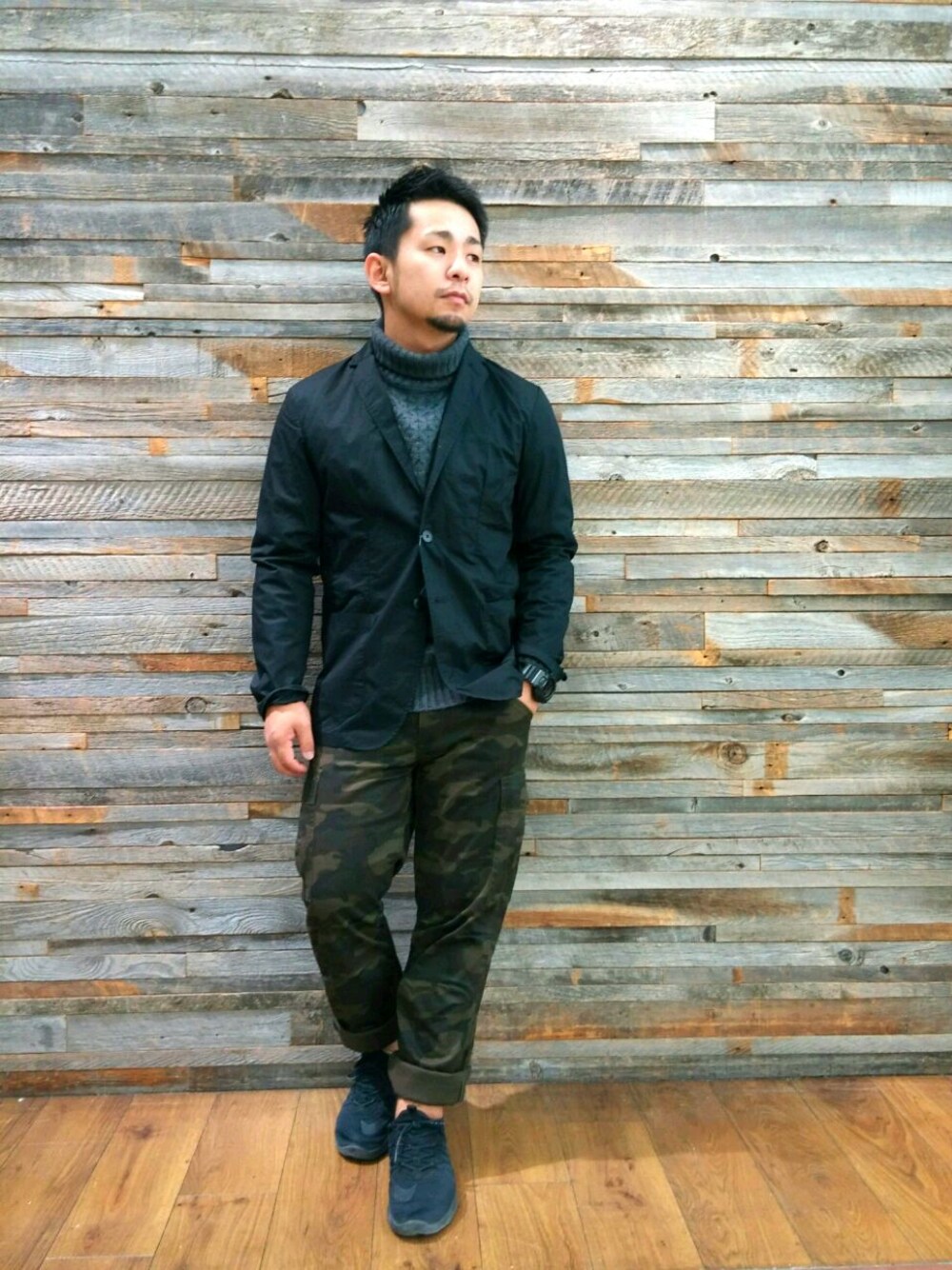 ラフに見えやすいカーゴを細身で選び トップスはテーラードジャケットを 選べばキレイめにも履けます! 重宝しそうですね! ゴツメのブーツにインしたいです!