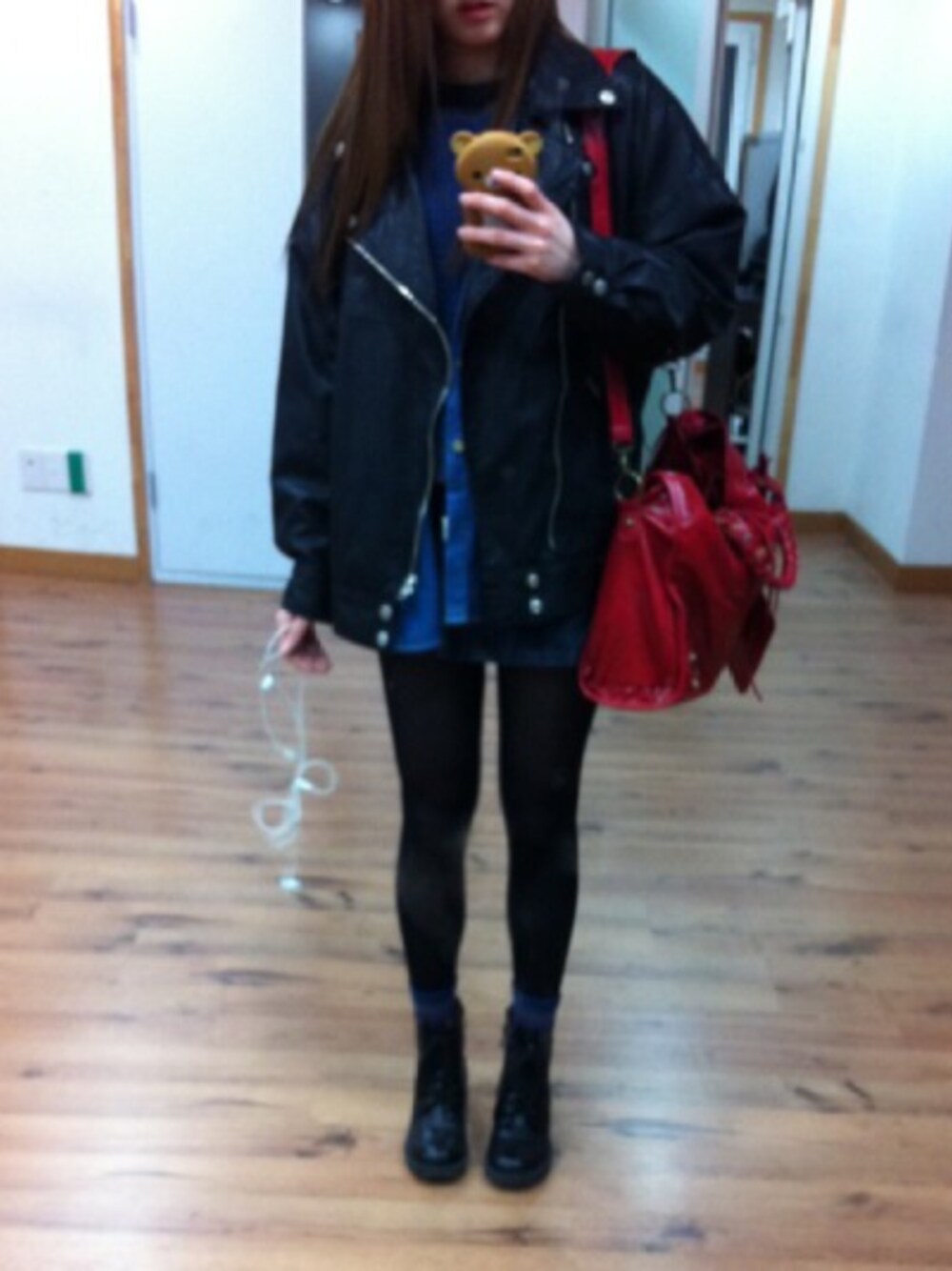 비와요 ! 오버사이즈 라이더자켓에 청남방 레이어드 했어욤
