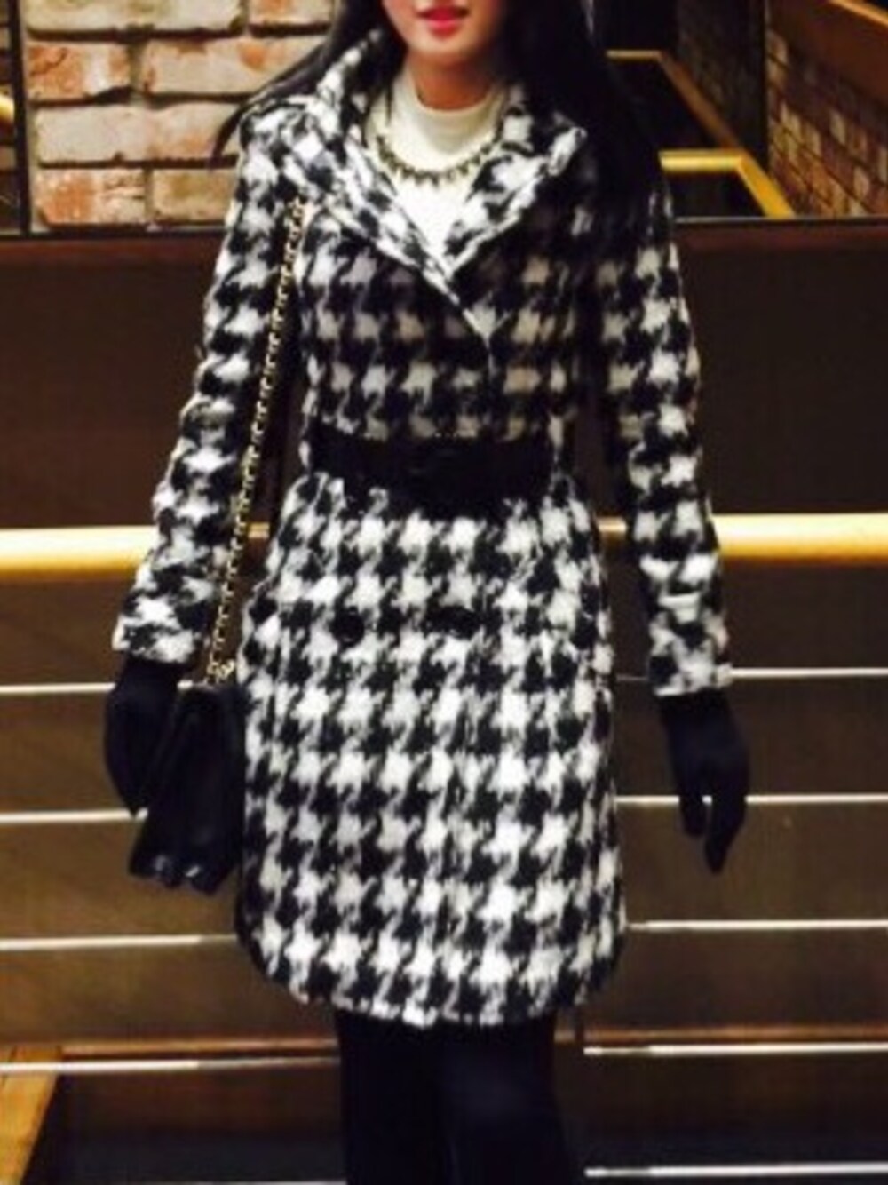 ブラック系のハンドバッグ、ブラック系の手袋を着用したレディースの冬コーディネートの1枚目の写真